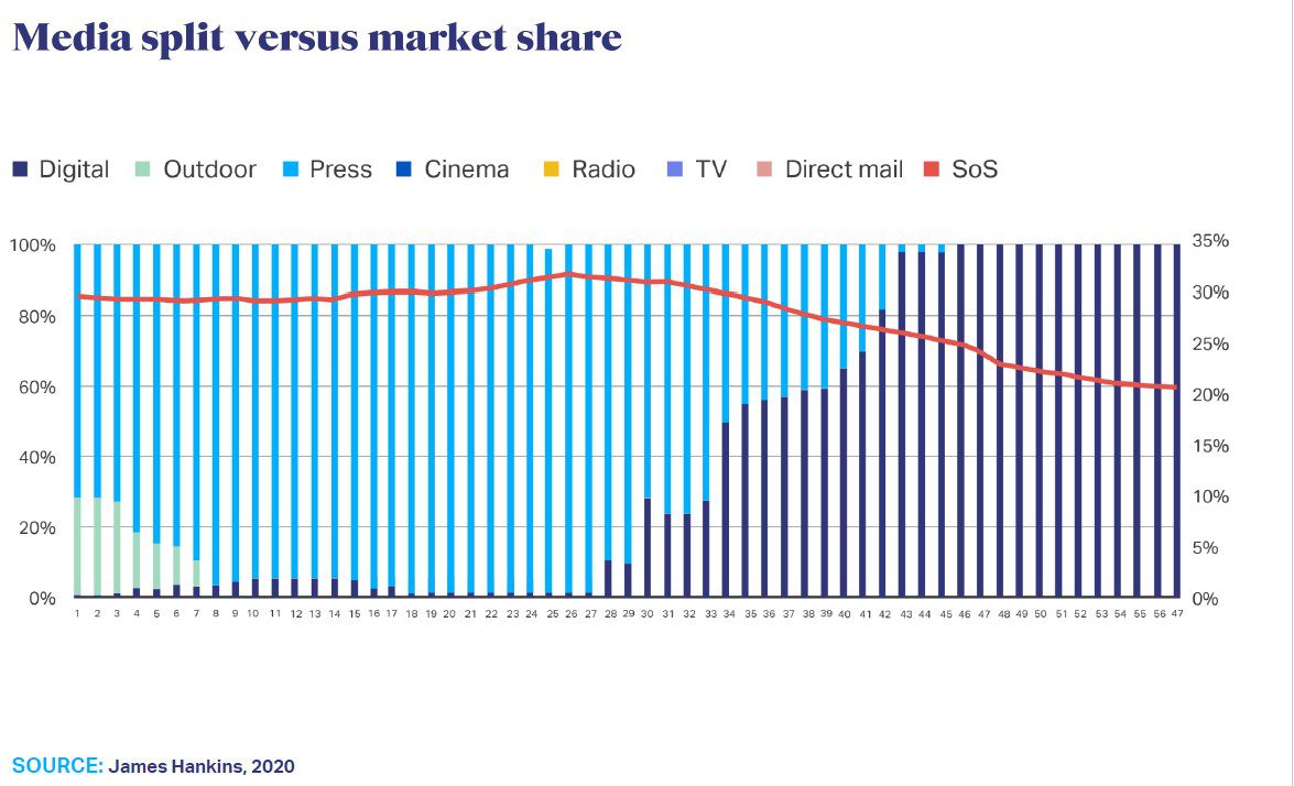 Event Reports, IPA EffWorks 2020, October 2020 “Les Binet outlines why “share of search” is a powerful, predictive marketing metric