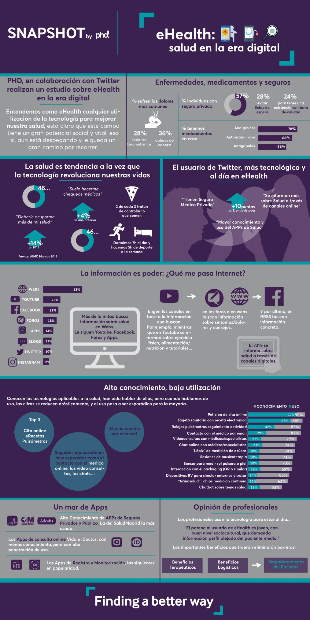 La agencia de medios PHD, perteneciente a OmnicomMediaGroup, ha elaborado un estudio de eHealth en la era digital y presenta un avance del mismo en el Día Mundial de la Salud. El estudio, llevado a cabo por PHD en colaboración con Twitter, pretende ser una foto del impacto del mundo digital en la salud, y busca dar respuesta a un interrogante: ¿hasta qué punto la era digital está cambiando la forma de cuidar y mejorar nuestra salud? El estudio será presentado en su totalidad en el próximo mes de mayo.