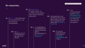 En esta ocasión, analizando la innovación desde el punto de vista de los consumidores, PHD ha entrevistado a más de 1000 españoles con el objetivo de descubrir la curva de madurez de 15 entornos innovadores, así como la percepción que tienen de las diferentes categorías.